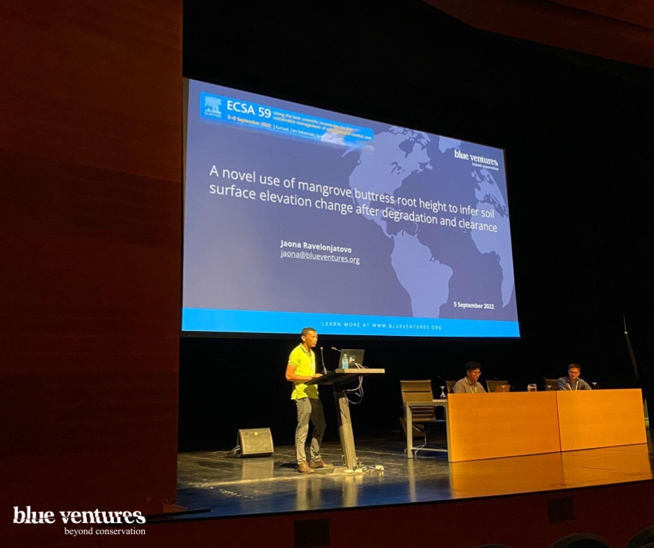 A l’occasion de la conférence ECSA59 en Espagne, Jaona Ravelonjatovo, Responsable scientifique Carbone bleu chez Blue Ventures, a présenté👨‍💼, une approche innovante menée depuis quelques années pour estimer le changement d’altitude du sol après la dégradation de la mangrove🌱. Cette approche est fondée sur près de 5 ans de travail dans la baie de Tsimipaika (DIANA), où une équipe scientifique spécialisée dans les mangroves fait le suivi régulier des sols dégradés de mangroves pour déterminer l’impact de la déforestation sur les sols.